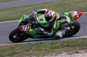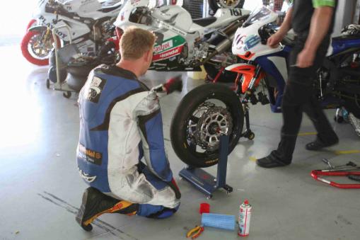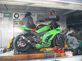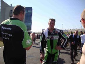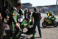 So war der Start schon nicht optimal, was zur Folge hatte, dass er in der ersten Kurve ganz innen eingeklemmt und auf die Curbs geschickt wurde. Bis zur nächsten Kurve wurde er dann noch mal fast ins Aus geschickt, so dass er sich nach der ersten Runde von Startplatz 8 ins Rennen gegangen auf dem 15. Platz wiederfand. Nach zwei weiteren Runden war es dann nur noch der 17. Platz, ehe Dirk wieder seinen Rhythmus gefunden hatte und das Rennen auf Platz 13 beenden konnte. Komplett sauer auf sich brauchte Dirk erst mal einen Moment für sich, galt es doch die richtige Einstellung zum Rennen für die Open-Klasse zu finden. Zuvor wartete aber erst einmal der Prüfstand auf Paulchen. Wie zu erwarten, wollten die Herren von der Technik wissen, was die neue Kawa so leistet.