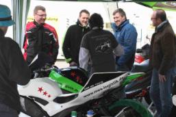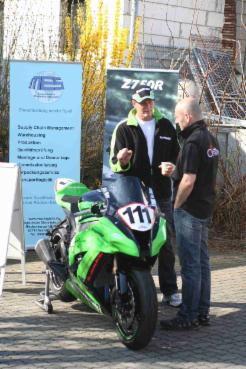 Wie zu erwarten, hat sich Dirk in die neue Kawasaki ZX 10R verliebt. Mit ihr sollte es laut den aktuellen Pressemitteilungen möglich sein, mit den BMWs mithalten zu können. Hierzu haben wir u.a. Kontakt zur Fa. 2Rad-Tech (www. 2rad-tech.de) aufgenommen. Dessen Inhaber, der ehemalige Rennfahrer Hans Jung, hat uns mittlerweile ebenfalls seine Unterstützung zugesagt.