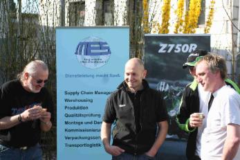 Denn auch die Versorgung unserer Sponsoren, Freunde und Fans ist uns gut gelungen. Dank des Einsatzes von Dennis Unrein vom Pig&Pipes in Jügesheim und Metzger Michael Frühwein (zum-christoph.de), die für die notwendige Verpflegung sorgten, nutzten unsere Freunde und Partner den schönen Rahmen für lockere Benzingespräche und zum Knüpfen, Pflegen und Intensivieren von Kontakten. Bei Kaffee und Kuchen, Steak und Bier wurde so manches Projekt angestoßen; auch das Racerangebot unseres Partners Motorradbekleidung Hedi Vogel und die zum Verkauf stehende alte Kawa wurden interessiert begutachtet.