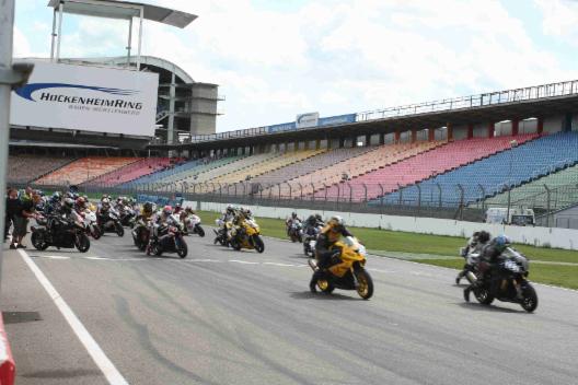 Nun in der Startaufstellung auf Platz 9 stehend, hatte unser Startfahrer Lorenz alle Favoriten vor sich. Als die Startflagge fiel, schwebte Lorenz quasi über die Strecke hin zum Motorrad, flog bereits als Zweiter auf die erste Kurve zu und schob sich Ende Start-Ziel beherzt an die Spitze des Feldes. Zum Leidwesen des Teams Bitter/Mester, die ebenfalls zum Favoritenkreis zählten, sprang deren BMW am Start leider nicht gleich an und sie verloren wertvollen Boden im Kampf um die Spitze, der letztlich zwischen Tode und Lorenz entschieden wurde. So dauerte es eine Runde, bis Arne Tode Ende Nordkurve den ersten Angriff startete. Eine bemerkenswerte Aktion, bei der man die Erfahrung und Härte eines WM-Fahrers vor Augen geführt bekam – bremste er sich doch extremst innen an Lorenz vorbei und wurde ob seines optimistischen Manövers folgerichtig zu weit nach außen getragen. So konnte sich Lorenz beim Herausbeschleunigen vorübergehend wieder an die Spitze setzen. Eingang Motodrom war dann Todes Aprilia erneut vorne, bis sich Lorenz in der Sachskurve unter dem tosenden Applaus der Zuschauer ebenfalls erfolgreich innen hineinbremste. Leider konnte er Tode nur bis zu einem weiteren Duell in der Nordkurve hinter sich halten. Im gleichen Stile wie zuvor setzte sich Tode innen hinein, konnte aber dieses Mal den Angriff besser platzieren und blieb vorne.